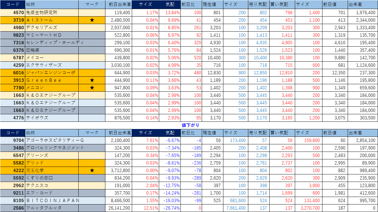 ホット銘柄-上げ銘柄&下げ銘柄(2025/11/17-前引け後) 投稿日: 2025年11月17日2025年11月17日 投稿者: h_nagahama 「★」は昨日時点で注目した銘柄、「値上がり」にあれば伸びており、「値下がり」にあれば押しを形成している可能性。※銘柄の重複はお気にされずに。