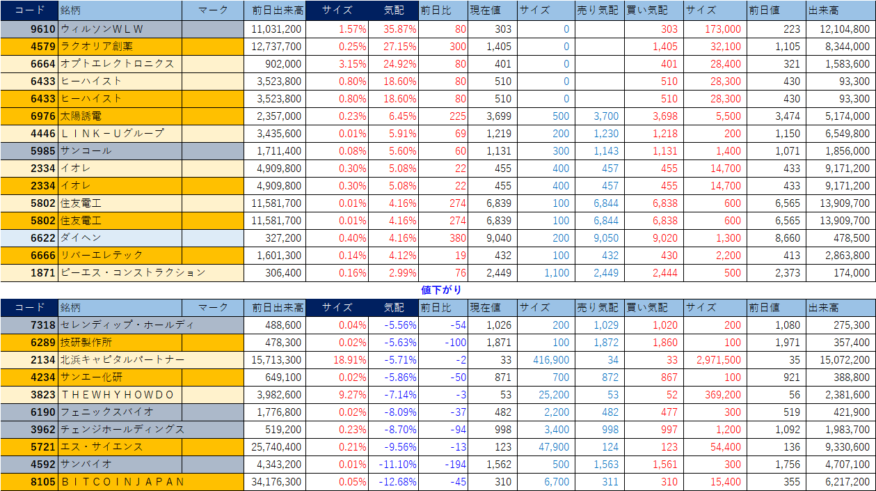 ホット銘柄-上げ銘柄&下げ銘柄(2025/12/03-大引け後) 投稿日: 2025年12月3日2025年12月3日 投稿者: h_nagahama 「★」は昨日時点で注目した銘柄、「値上がり」にあれば伸びており、「値下がり」にあれば押しを形成している可能性。※銘柄の重複はお気にされずに。