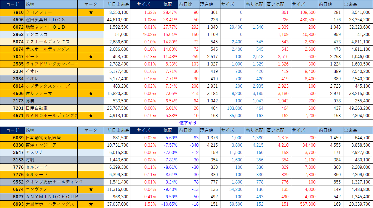 ホット銘柄-上げ銘柄&下げ銘柄(2026/02/17-大引け後) 投稿日: 2026年2月17日2026年2月17日 投稿者: h_nagahama 「★」は昨日時点で注目した銘柄、「値上がり」にあれば伸びており、「値下がり」にあれば押しを形成している可能性。※銘柄の重複はお気にされずに。