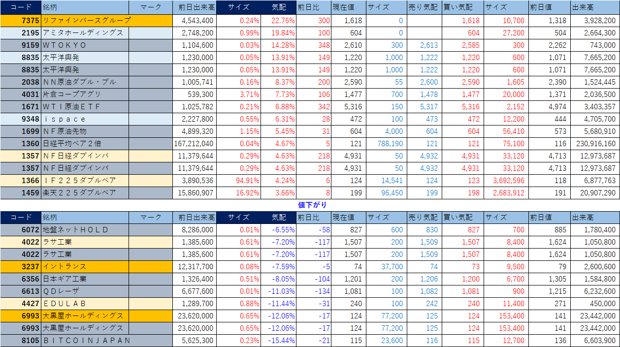 ホット銘柄-上げ銘柄&下げ銘柄(2026/04/03-大引け後) 投稿日: 2026年4月3日 投稿者: h_nagahama 「★」は昨日時点で注目した銘柄、「値上がり」にあれば伸びており、「値下がり」にあれば押しを形成している可能性。※銘柄の重複はお気にされずに。